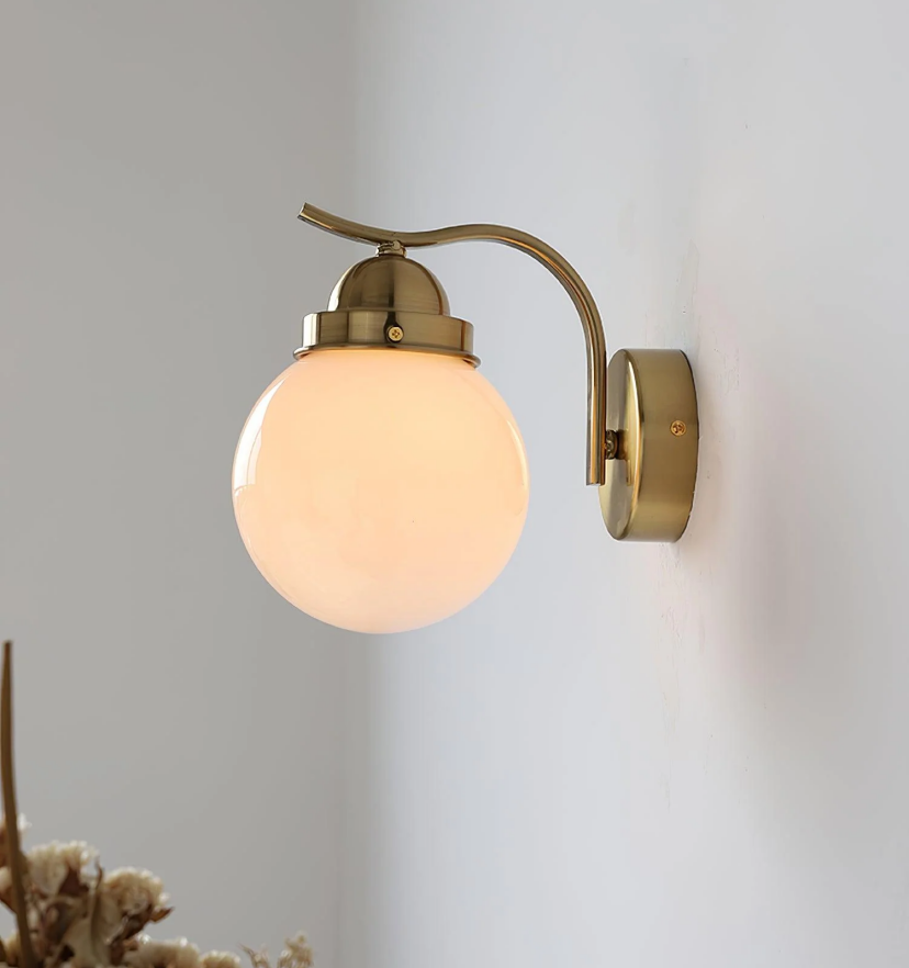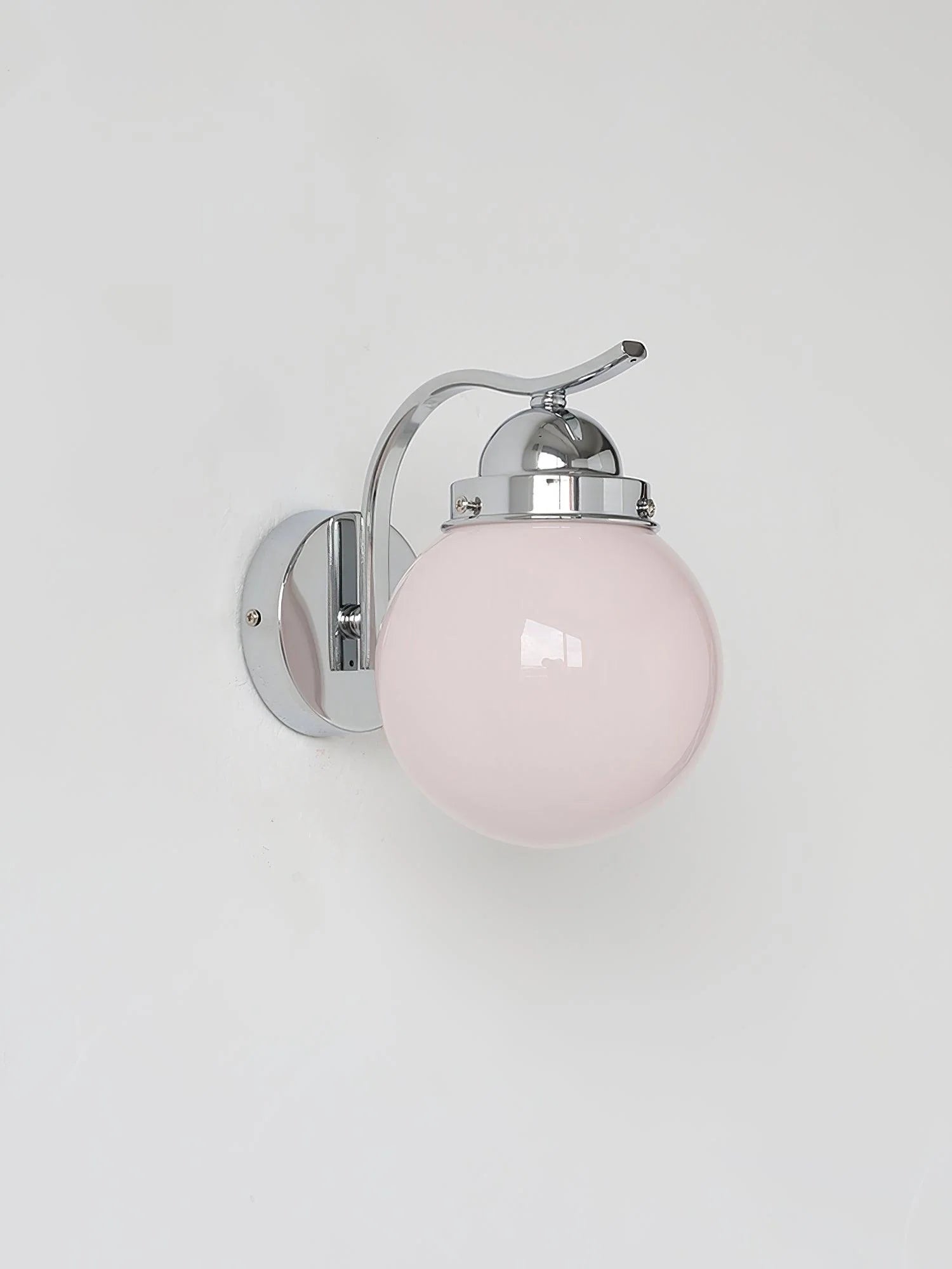 The Ryttenberg Wall Lamp has a retro chic look with classic globe shape in a White glass. The Copper plated/Chrome finish showcases the richness of the lamp body. Available in a variety of glass cover finishes to add style to the fixture.