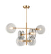 The Arteriors Norwich Chandelier to modern casual design with Bauhaus influences. The alternating tiered silhouette is composed of six hammered glass in a smoke luster finish on an brushed copper iron frame.