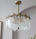 Hand-formed glass petals with clear tints make up the frame of the opulent decorative patterned glass round chandelier. Each petal is made from glass and features a gold finish, while golden frames are integrated throughout for a glimmering silhouette.
