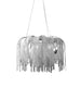A resplendent mass of burnished cascading fluidity, Volver LED Linear Suspension emphatically elevates the extravagance, melding the company's aesthetic affinity for elegantly draped metal chain fixtures with energy efficient LED technology. Elaborate elongated lengths of nickel-plated chains lavishly drape and loop around a hollowed central frame that houses the LEDs, creating a ceaseless contemporary sparkle for a new level of luxury.
