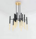 A striking yet refined centerpiece. Match your tailored rooms with the clean design of the Chandelier. The chandelierβs repeating shapes remind you of the silhouette of a modern sculpture. Slender metal rods order across a sleek crossbar with an uplifting quality. Perfect for the modern space, the chandelierβs straight contours complement the architectural lines of the room. The multi-directional glow glazes them all, creating a bright, festive atmosphere.