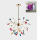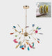 This is a luxurious agate chandelier. The natural agate rough is sliced, polished, perforated, and made. The agate is brightly colored and has a smooth surface. It has a strong light transmission and no glare.