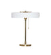 A metal pull chain switch hangs over a solid metal base with an inset color ring that matches the shade color. Light also escapes through the top metal feature to add highlights to the spun metal shade. A metal pull chain switch hangs over a solid brass base which features an inset color ring to match the shade. This light draws you in to imagine all the great possibilities alone it can give and the pleasure you take from seeing it for yourself.