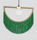 Such a precious jewel, the fringes elegantly adorn the golden metal geometric structure. The rigidity of the rainbow serves as a contradiction to the fragility and delicateness of the fringes. This silky and light curtain gently twirls under the effect of the air currents... Wink draws both the eye and the hand: you want to caress and run your hands through it, slipping them inside this waterfall of wools that are warm to the touch. The bulb is housed in a delicate white glass globe.