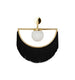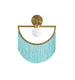 Such a precious jewel, the fringes elegantly adorn the golden metal geometric structure. The rigidity of the rainbow serves as a contradiction to the fragility and delicateness of the fringes. This silky and light curtain gently twirls under the effect of the air currents... Wink draws both the eye and the hand: you want to caress and run your hands through it, slipping them inside this waterfall of wools that are warm to the touch. The bulb is housed in a delicate white glass globe.
